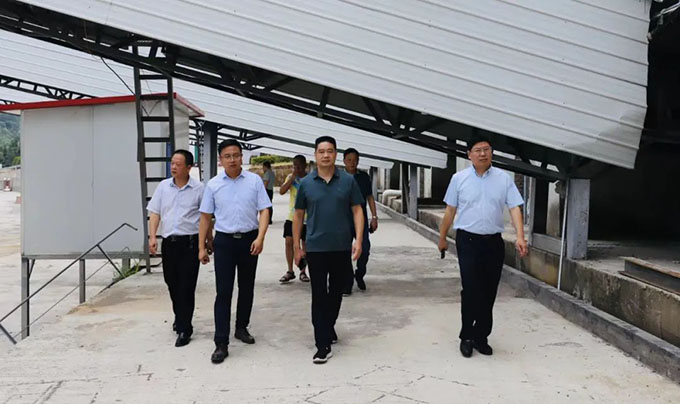 萬(wàn)寶投資集團(tuán)黨委書記、董事長(zhǎng)陽(yáng)文林(左三),萬(wàn)寶投資集團(tuán)總經(jīng)理、萬(wàn)鵬建材董事長(zhǎng)徐業(yè)波(右一)等實(shí)地察看鑫鑫采石場(chǎng)場(chǎng)區(qū)