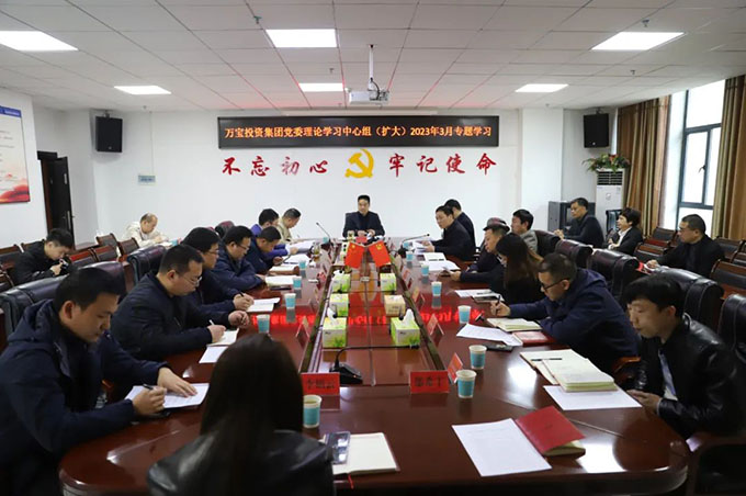 3月9日,萬寶投資集團黨委書記、董事長陽文林主持召開黨委理論學(xué)習(xí)中心組(擴大)2023年3月專題學(xué)習(xí)會議,黨委副書記、總經(jīng)理徐業(yè)波,黨委委員、副總經(jīng)理謝緯,黨委委員、紀(jì)委書記葛旭華,黨委委員易志高出席,全體主管及以上人員參加。