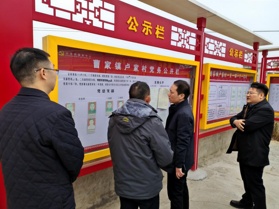 葛旭華一行到盧家村后,仔細(xì)查看了黨務(wù)公開欄,認(rèn)真聽取了駐村第一書記的工作匯報,對駐村第一書記在村開展的工作給予充分肯定,對盧家村2024年10月30日完成軟弱渙散村摘牌脫帽給予表揚(yáng),同時指出了工作中存在的短板和弱項(xiàng),希望再接再厲,補(bǔ)短板、強(qiáng)弱項(xiàng),并就下一步黨組織建設(shè)工作提出了具體意見。