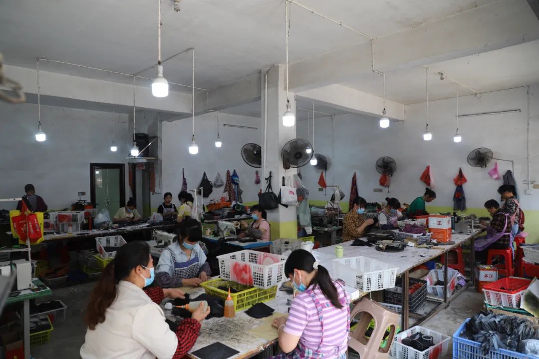 (圖為大田村村民在家門(mén)口的駿翔皮具廠務(wù)工)